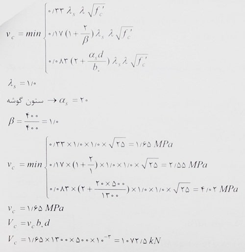 حل: می دانیم مقدار مقاومت برش یک طرفه مطابق رابطه زیر محاسبه می شود: